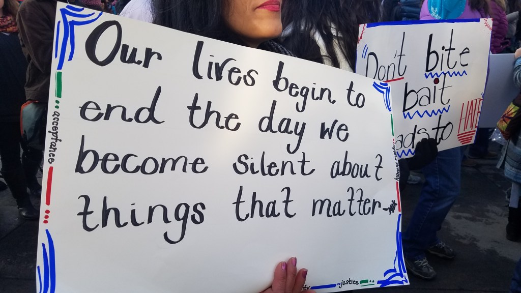 “All too often, when we see injustices, both great and small, we think, That’s terrible, but we do nothing. We say nothing. We let other people fight their own battles. We remain silent because silence is easier. Qui tacet consentire videtur is Latin for ‘Silence gives consent.’ When we say nothing, when we do nothing, we are consenting to these trespasses against us.”