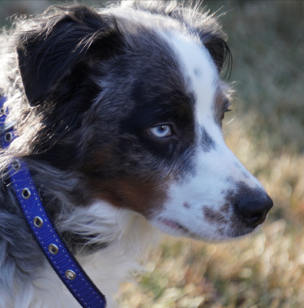 My buddy, Oberon, tries my patience almost every day. He turned two on September 19 and is still very much puppy. Of course, as an Australian Shepherd, he has the energy to burn and I have no energy left at the end of the day. We finally see eye to eye at bedtime and he’s a real snuggle buddy. While I was trying to take some sky pictures this afternoon, (not a cloud in the sky and nothing exciting going on) Oberon ran like a madman around the yard, chasing the leaves, imaginary bunnies, and just running in general. I finally did get a photo of him that wasn’t a blur.