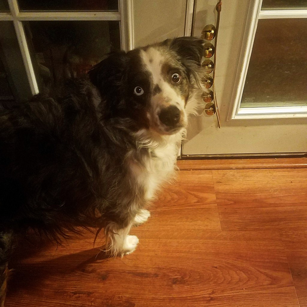 Of course, I have pics of Obie, a year ago today and today ringing the bells to go out.