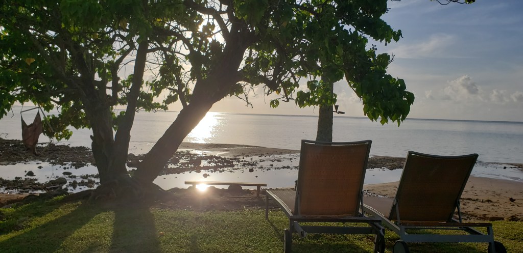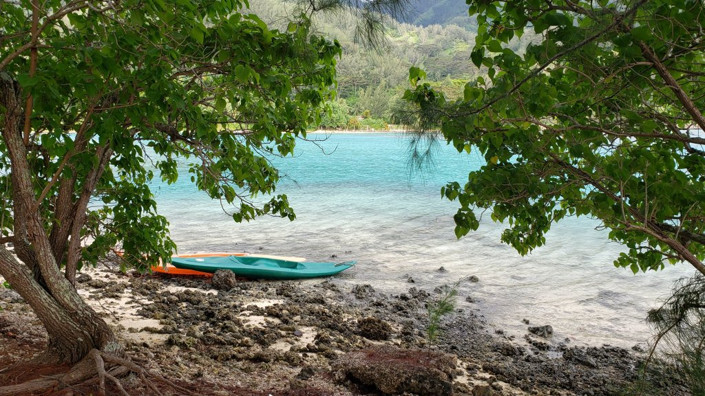 I chose an Airbnb, Fare Tokoau Moorea, that provided kayaks for their guests, which I greatly appreciated. Since this was my first experience with kayaking, I was thrilled to paddle to a nearby island. As I paddled and admired the clear waters, watching the fish and sharks swimming below, I was pleasantly surprised to hear beautiful melodies coming from the shore. Please excuse my lack of recording skills; I was still learning how to kayak! I know the quality isn’t great but at the time, you can’t imagine how thrilled I was to suddenly hear these voices in my struggle with the paddles.