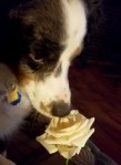 Aww, isn’t that so sweet? Such a sensitive pup. Don’t let him fool you. Oberon the Destroyer is trying to eat the rose. 🙂