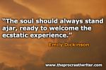 Mindful Quote of the Day #45 -Jan 31, 2017 The soul should always stand ajar, ready to welcome the ecstatic experience. -Emily Dickinson