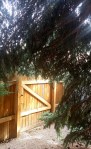 In my backyard, I have this huge evergreen tree and under the umbrella of its cascading branches you can imagine stepping through the tunnel provided by its branches and through this gate to some fantastical lands. I love sitting under this tree and letting my imagination go wild. Thursday Doors – December 29, 2016